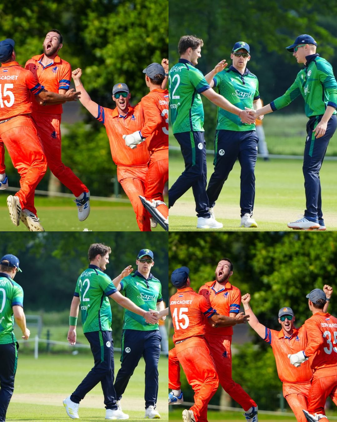 The Division Two match between Jersey and Sweden was the first time two bowlers from opposite teams – Chloe Greechan and Gaya Jayaweera – had taken hat-tricks in the same international match, across all formats and genders.